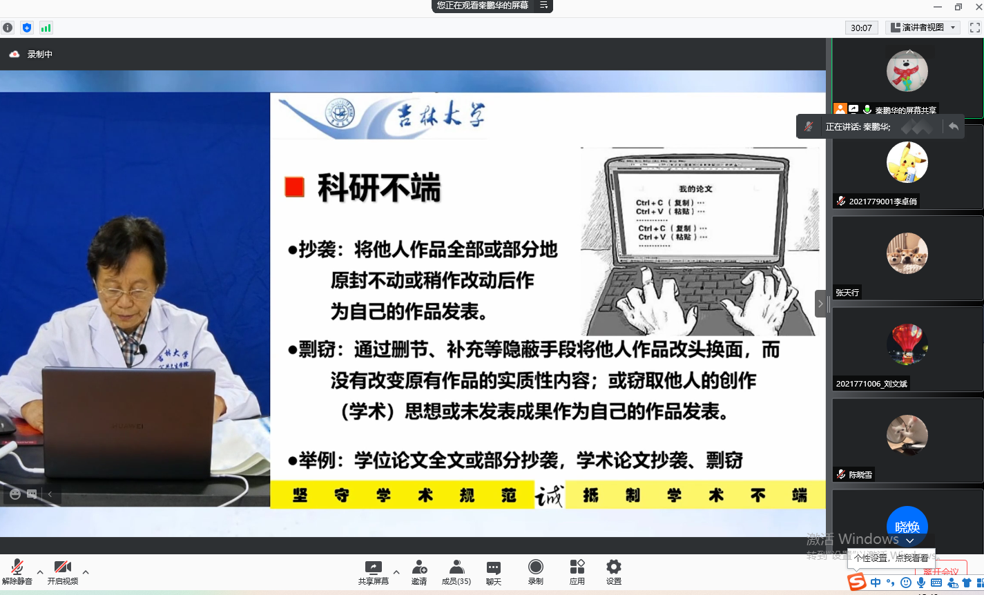 Professor Liu Ya from the School of Public Health introduced the specific contents of scientific misconduct with real-life cases, asking students to follow academic norms and resist academic misconduct. Academic ethics and academic character will not only affect students’ study and research in the school, but also have a formative impact on their life even if they may not embark on the path of scientific research in the future.