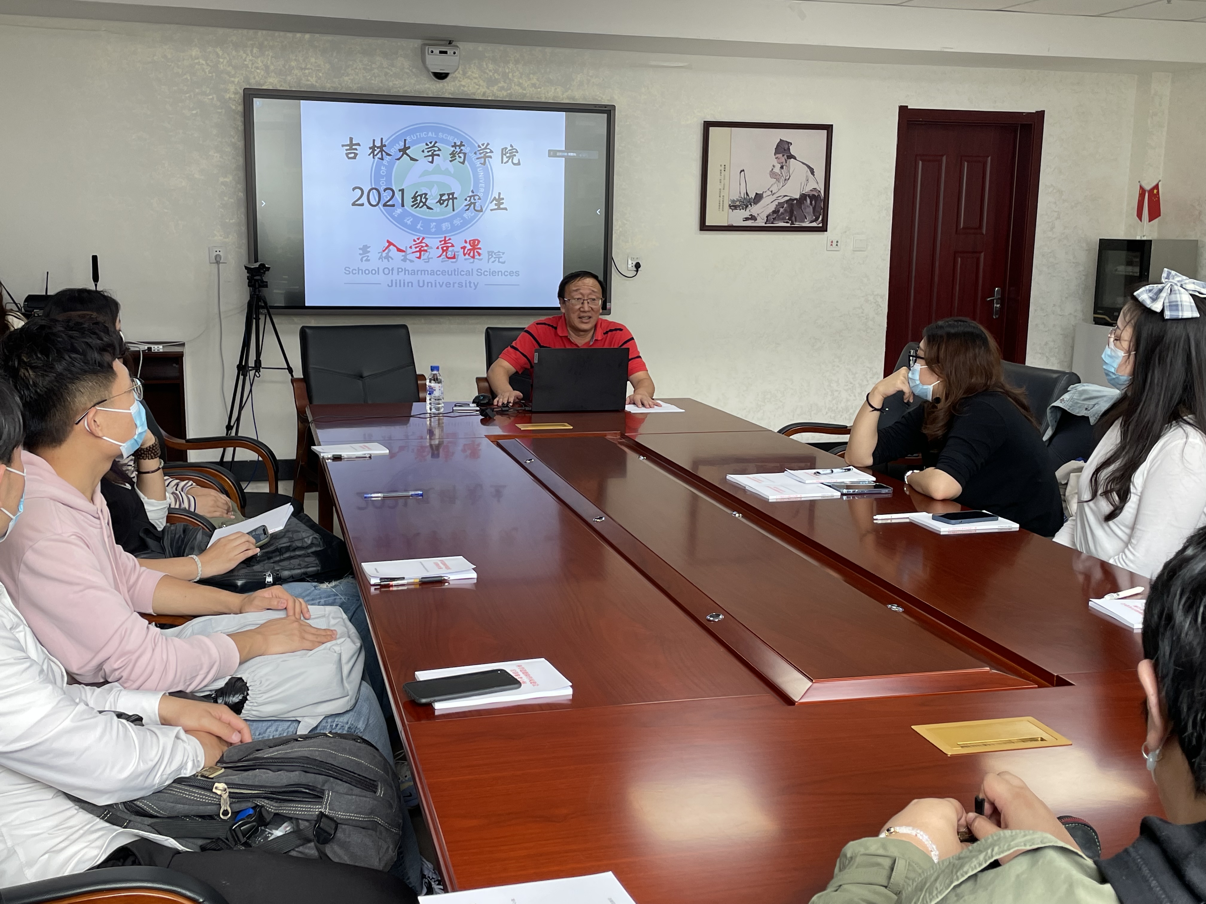 On September 22, 2021, the School of Pharmaceutical Sciences launched orientation programs. Enrollment education is the first lesson for graduate students, and an important chapter to strengthen graduate education and training. To familiarize the 2021 class of graduate students with the new learning environment and relevant rules and regulations, help them set learning goals, and make life planning, the School of Pharmaceutical Sciences carried out centralized enrollment education programs for them from September 26 to September 27. In the context of regular epidemic prevention and control, the two-day enrollment education programs were conducted both online and offline in Conference Room 508 of the School of Pharmaceutical Sciences.