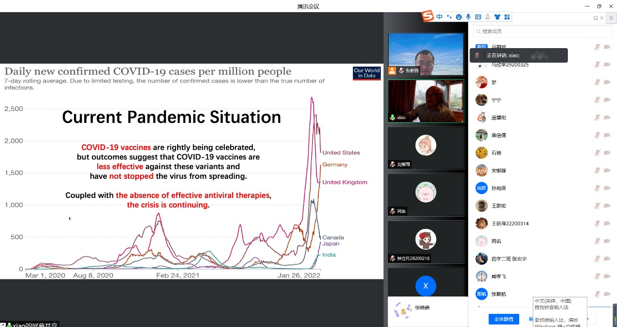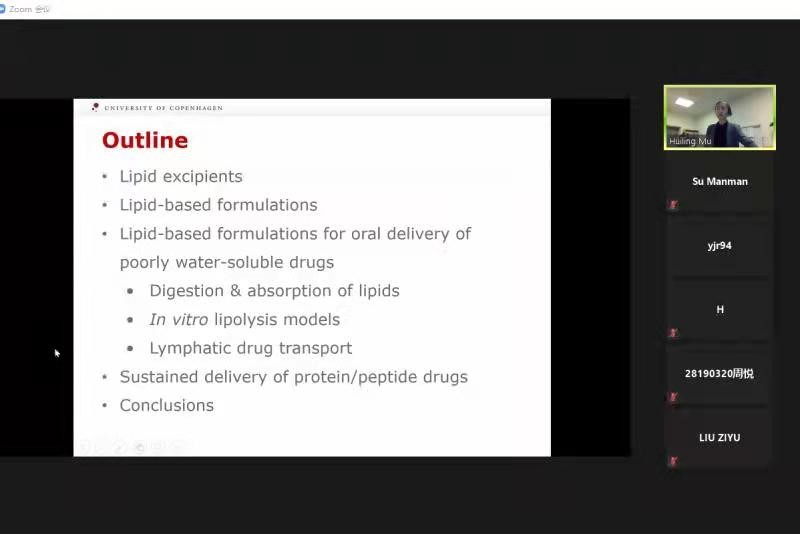 Five professors brought different lectures to students from the perspective of drug discovery,pharmacological mechanism, research methods,research topic selection, etc., combined with hot spots such as COVID-19.During the questioning session, the students spoke actively. More than 1,000 teachers and students attended the courses.The participating students said that they had benefited a lot from this activity, broadened academic horizons, deepened their understanding of scientific research, increased confidence in the pharmacy major, and pointed out the direction for further study in the future.The teachers who participated in the course said that the course has built a platform for them to cooperate in international research and laid a good foundation for promoting further international research cooperation. The school will take this opportunity to take multiple measures and efforts to continue to form a good situation of internationalization and talent training.