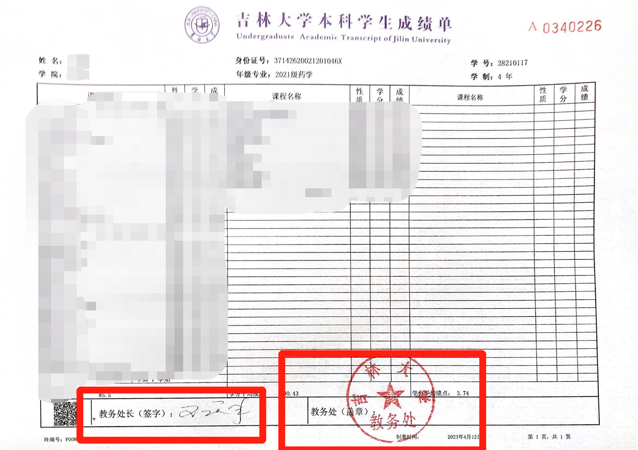 可信成绩单范例: