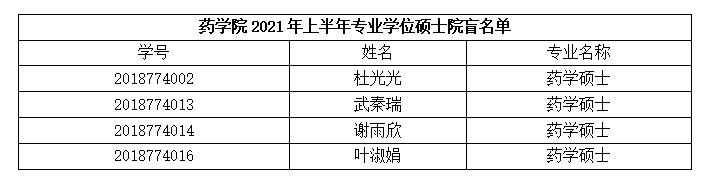 根据学校硕士学位论文抽查送审工作相关要求,学院将对未被学校抽查到的申请硕士学位论文按20%比例进行“双盲”评审,“双盲”评审论文份数为1份,现将“双盲”评审名单公示如下: