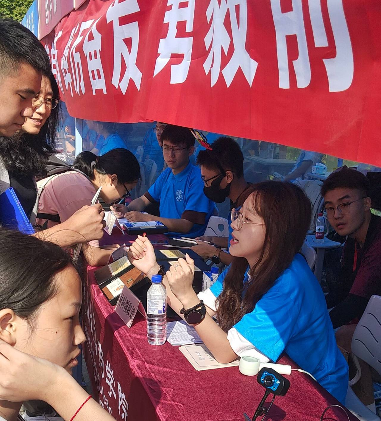8月26日早晨7点,23级新生辅导员杨博斐老师、4名辅导员助理、学生工作管理委员会、学生会工作人员以及迎新志愿者在新生报到处短暂集合后,迅速到达各自工作岗位,精神饱满准备迎接第二批新生的到来。