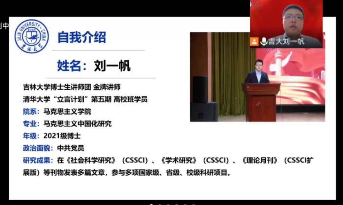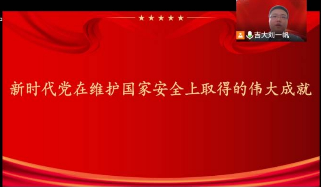 马克思主义学院2021级博士研究生刘一帆,他主要从国家安全头等事、国家安全新形势、国家安全新举措、国家安全新成就四个方面进行展开介绍。