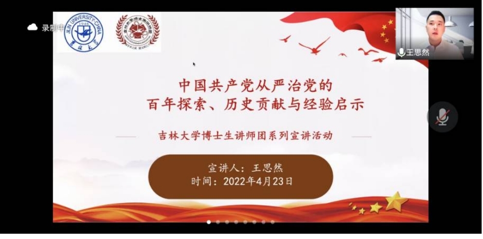 马克思主义学院2021级博士研究生王思然博士汇报的有关《中国共产党从严治党的百年探索、历史贡献与经验启示》相关宣讲报告。