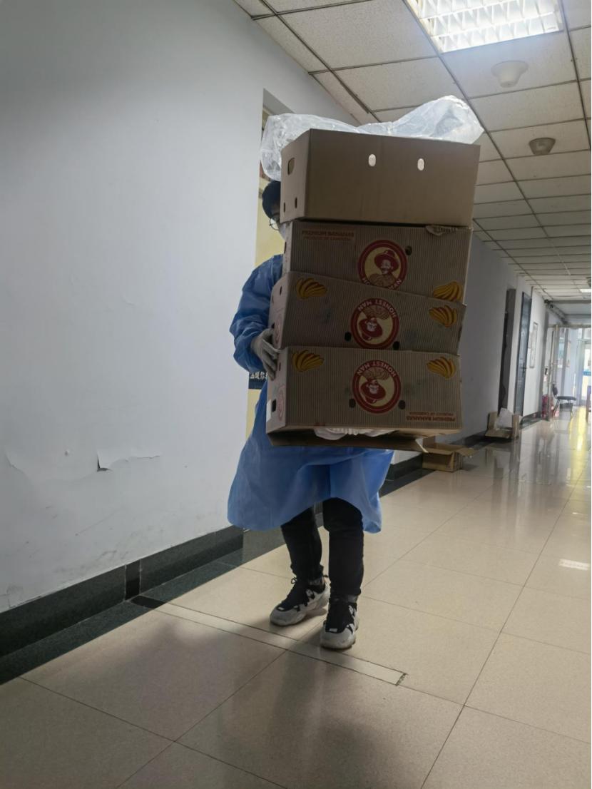 的耿智慧老师,舍小家而顾大家,与我们一同封闭在寝室楼里,不但需要完成学校的各种任务,还在时刻关心同学,为同学解决所需。我的导师路海滨教授,不仅在学业上指导我们阅读文献,还担心我们的生活,问我们缺少什么,关心我们的身心健康。而我们六公寓的所有男生担负起了发餐发水的任务,我们带着N95口罩,穿着防护服拎着几十人的餐爬着楼梯分发到了每个楼层,呼吸的不顺畅在加上运动量减少带来的体力下降,可以说我们是踉踉跄跄的走完这段楼梯,出了一身的汗。尽管很累,可我们依然积极的六点起床,为了大家能够吃上热乎的饭菜。巾帼不让须眉,一些女生自愿担负起分发的工作,为每一位同学分发餐盒和检测试剂盒,从不叫累。有的同学待在寝室,尽管因长时间的封闭而有些烦闷,但也绝不添乱,为响应学校的号召,呆在寝室里不乱串,避免带来风险。尽管在这场突如其来的战“疫”面前,我们每个人都显得很渺小,但事实上,我们每个人都是抗击疫情的英雄。