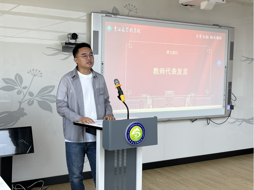 学院青年教师、药学系孙伟伦副教授作为教师代表发言。他向毕业生表达了诚挚的祝愿,勉励大家在科研道路上勇于创新、勇攀高峰。他强调,药学工作者应注重创新实践,积极推动新药研发与成果转化,切实解决临床用药问题,以专业知识服务公众健康。