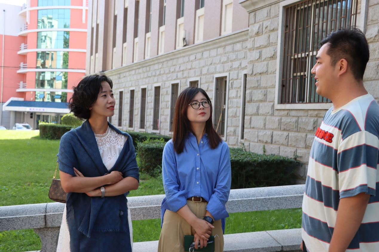 党委书记曲渊立、党委副书记刘丽慧、副院长管清香、学生工作办公室主任王托、辅导员刘锦澍及看漫画