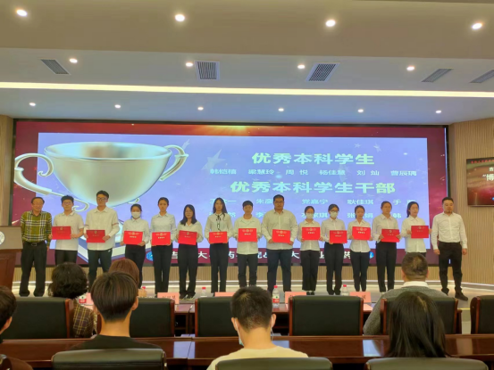 党委书记曲渊立为优秀本科学生干部颁奖。