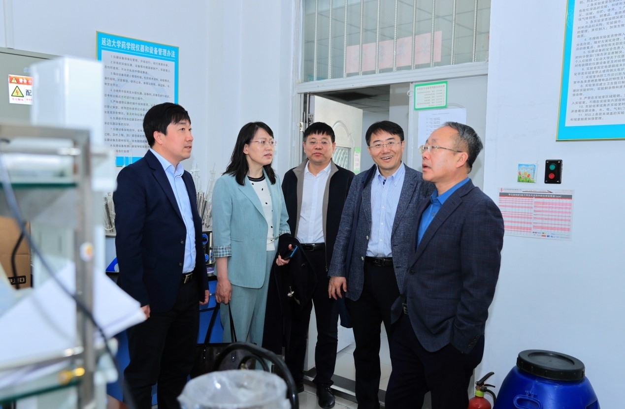 院长金学军、党委书记修景会、副院长郑昌吉、副书记赵成日、药物化学系主任兼学科主任张昌浩、看漫画