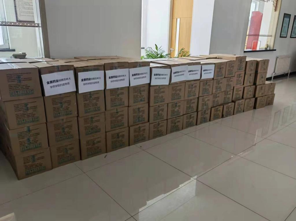 捐赠了6万余元防疫物资。长春金赛药业招聘部贾英杰经理表示“口罩、消杀用品是疫情防控的重要物资保障品,作为企业,我们想尽自己的一份力,为学院师生提供力所能及的帮助,助力平安校园建设”。