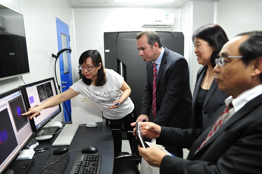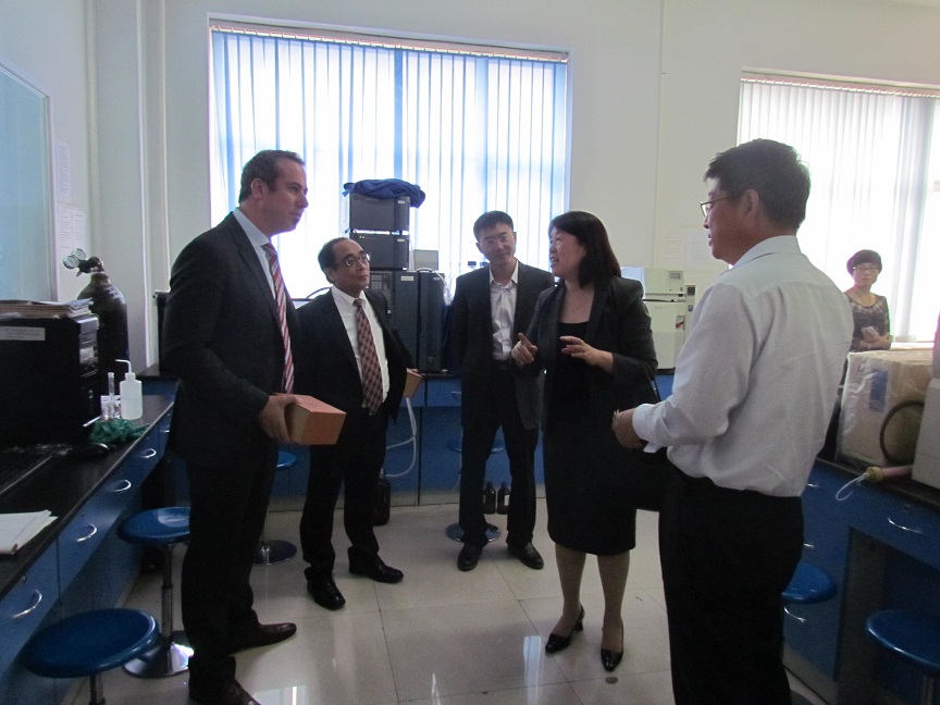 会谈结束后,Neil J. MacKinnon院长在裴院长的陪同下,参观了我院吉林省酵母表达重组蛋白质药物研发重点实验室及看漫画 -紫元医药科技研究中心实验室,Neil J. MacKinnon院长对我院的药物研发能力给予了高度赞赏。