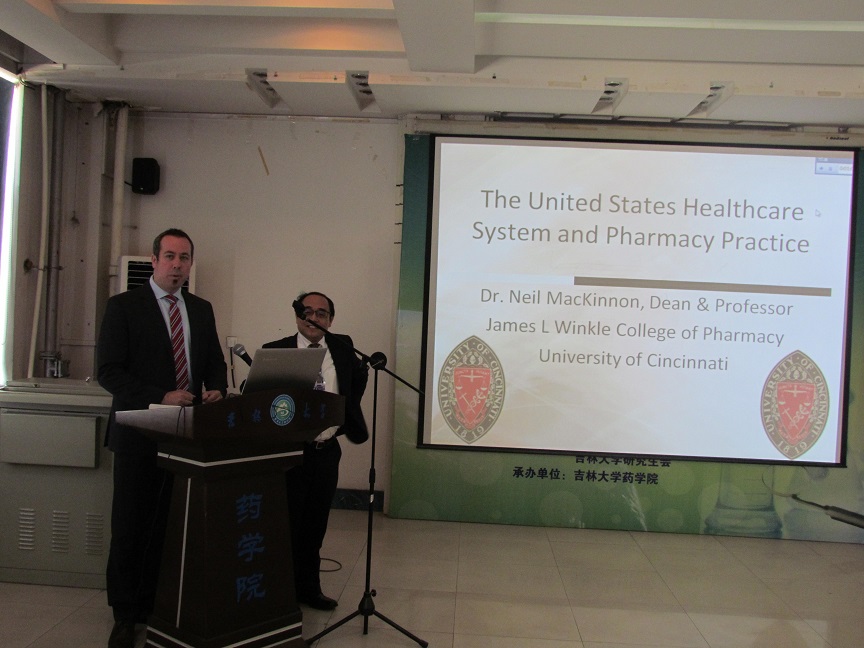 上午九点,在我院五楼报告厅举行了学术交流会议,看漫画 相关领导、相关专业的教师以及学院本科生及研究生参加了会议,会议由马杰副院长主持。会上,裴院长首先代表学院对Neil J. MacKinnon教授、Alex C. Lin博士的来访表示欢迎,并对我院的师资概况、专业设置情况、招生情况以及科研情况进行了介绍。接着,Neil J. MacKinnon院长介绍了辛辛那提大学看漫画 概况,并进行了以“US healthcare system and pharmacy practice”为主题的学术演讲,在学院教师和学生中引起了强烈反响。
