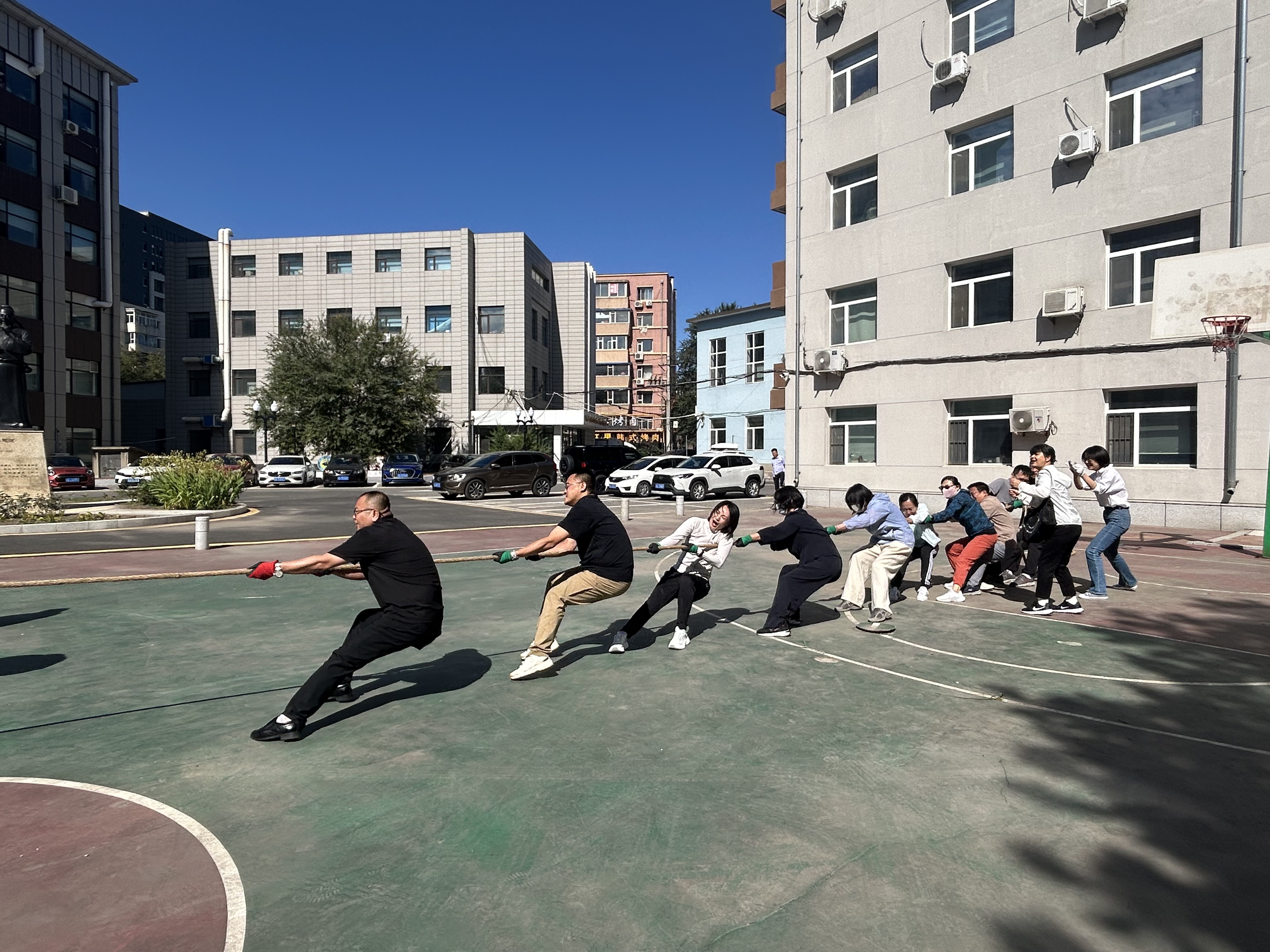 院长项金宝教授、党委书记孙曙光、院班子成员及各工会小组组成5支队伍,共60余位教职工参加了比赛。