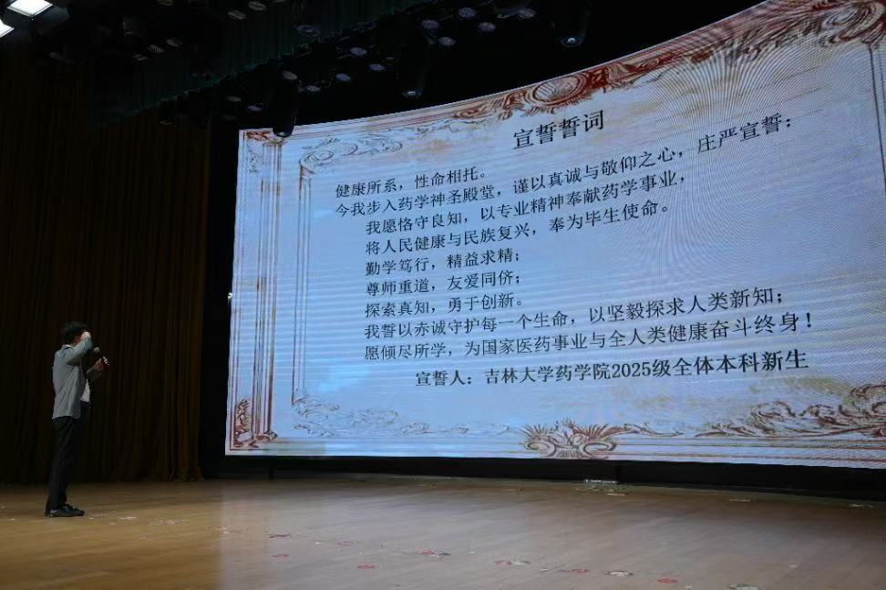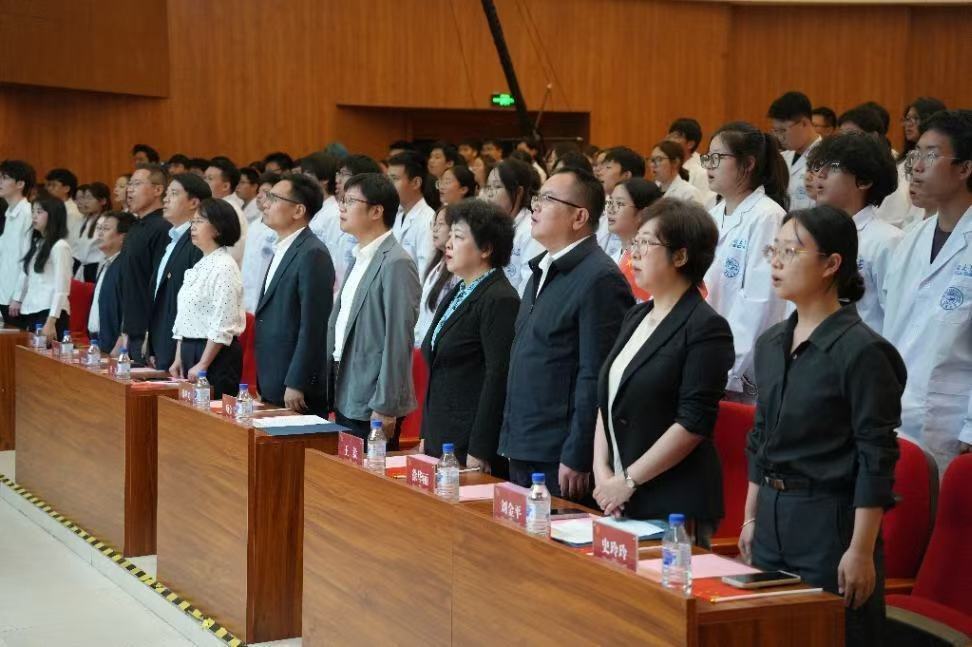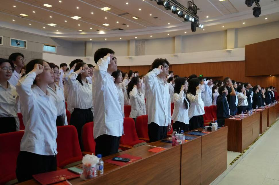 在入学宣誓环节,新生们高举右拳,许下铮铮誓言:“我愿以赤诚守护每一个生命,以坚毅探求人类新知,愿倾尽所学,为国家医药事业与全人类健康奋斗终身”表达了恪守信念、立志成才的坚定决心。
