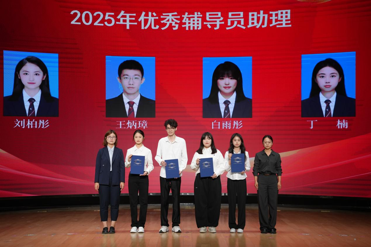 团委负责人、2025级本科生辅导员刘锦澍和2025级班主任史玲玲为2025年优秀新生辅导员助理颁发荣誉证书,表彰他们热情奉献、积极担当的榜样行为。