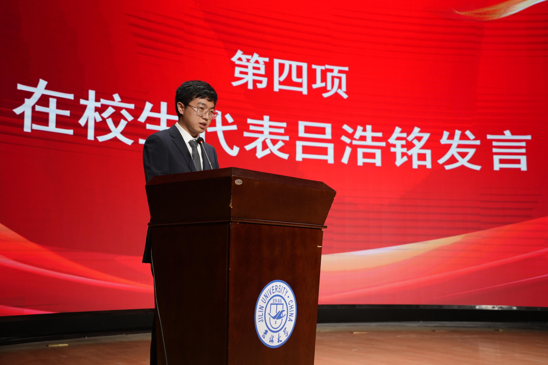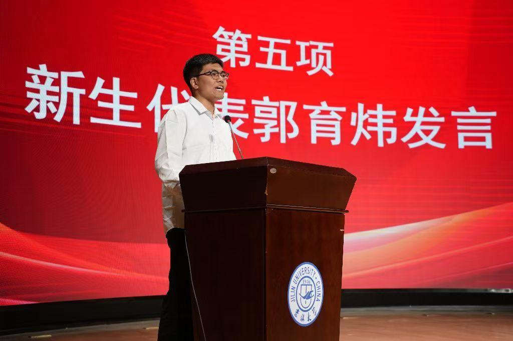 2022级学生代表吕浩铭同学结合自身成长经历,向新生们分享了大学学习与生活的体会。他鼓励学弟学妹在大学这片“自主耕耘的沃土”上学会选择与取舍,不断拓展视野、锤炼能力。同时,他提醒大家重视身心健康,并祝愿大家在看漫画